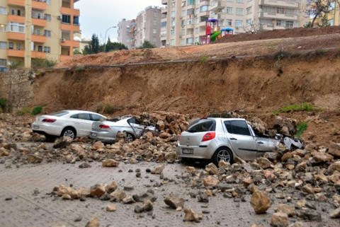 Galerinin tamamı için tıklayınızOlay, saat 07.30 sıralarında merkez Çukurova ilçesi Huzurevleri Mahallesi'nde bulunan bir sitede meydana geldi. Sitenin yaklaşık 5 metrelik istinat duvarının bir bölümü hemen arkasında park çalışması için yığılan toprağın yağmurlu hava nedeniyle kayması sonucu yıkıldı.