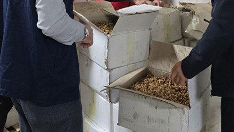 Denetimde koliler içinde küflenmiş ve kurtlanmış 11 ton ceviz içi ele geçirildi.