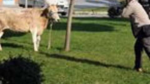 Bursa’da konulmak istendiği ahırdan kaçan 150 kilo ağırlığındaki dana, sahiplerine ve mahalle sakinlerine hareketli saatler yaşattı. Belediye görevlileri ve itfaiye ekiplerinin tüfekle attığı uyuşturucu iğne ile etkisiz hale getirilen dana, gözleri kapatıldıktan sonra ahıra konuldu. Merkez Yıldırım İlçesi’nde oturan İsmail Kurt, bugün Kurban Bayramı’nda kesmek üzere akrabalarıyla birlikte ortak satın aldığı 150 kilo ağırlığındaki danayı, Yavuz Selim Mahallesi’ndeki evinin ahırına bağlamak istedi. Bu sırada sahibinin elinden kurtulan dana kaçınca peşinden ortakları ve mahalle sakinleri yakalamak için koşmaya başladı. Yaklaşık iki saat süren kovalamacanın ardından dana, çağrılan belediye ekiplerinin tüfekle attığı iki uyuşturucu iğne ile etkisiz hale getirildi. İtfaiye ekiplerinin gözlerini kapatarak bağladığı dana, daha sonra sahibi tarafından kaçtığı ahıra getirildi.