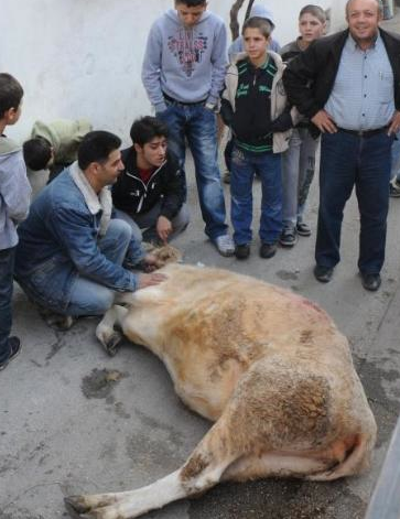 Galerinin tamamı için tıklayınızİtfaiye ekiplerinin gözlerini kapatarak bağladığı dana, daha sonra sahibi tarafından kaçtığı ahıra getirildi.