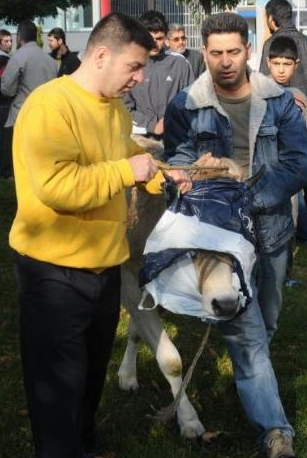 Bursa’da konulmak istendiği ahırdan kaçan 150 kilo ağırlığındaki dana, sahiplerine ve mahalle sakinlerine hareketli saatler yaşattı. Belediye görevlileri ve itfaiye ekiplerinin tüfekle attığı uyuşturucu iğne ile etkisiz hale getirilen dana, gözleri kapatıldıktan sonra ahıra konuldu. Merkez Yıldırım İlçesi’nde oturan İsmail Kurt, bugün Kurban Bayramı’nda kesmek üzere akrabalarıyla birlikte ortak satın aldığı 150 kilo ağırlığındaki danayı, Yavuz Selim Mahallesi’ndeki evinin ahırına bağlamak istedi. Bu sırada sahibinin elinden kurtulan dana kaçınca peşinden ortakları ve mahalle sakinleri yakalamak için koşmaya başladı. Yaklaşık iki saat süren kovalamacanın ardından dana, çağrılan belediye ekiplerinin tüfekle attığı iki uyuşturucu iğne ile etkisiz hale getirildi. İtfaiye ekiplerinin gözlerini kapatarak bağladığı dana, daha sonra sahibi tarafından kaçtığı ahıra getirildi.