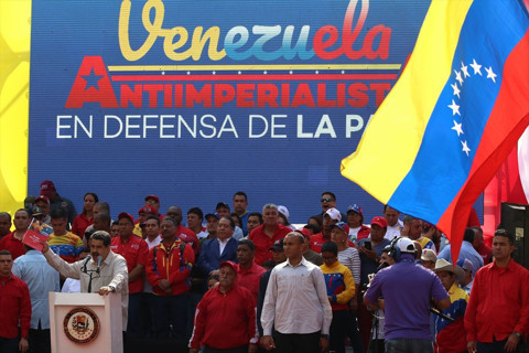 Galerinin tamamı için tıklayınızİktidardaki Venezuela Birleşik Sosyalist Partisinin (PSUV) yanı sıra sendika ve STK’lerin desteği ile kentin birkaç noktasından harekete geçen Maduro destekçileri, devlet başkanlığı sarayı Miraflores’in önündeki Urdaneta Bulvarı’ndaki miting alanına kadar yürüdü. Mitinge katılan Devlet Başkanı Maduro, burada yaptığı konuşmada, “Venezuela’nın iyiliği, geleceği için bir müzakere, diyalog ve anlaşma arayışı konusundaki gönüllülüğümü ve desteğini tekrarlıyorum.” dedi.