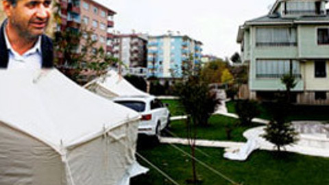 Enkazda 20 kişi can vermişti. O apartmanı yapan müteahhit olarak gösterilen Salih Ölmez'in villasının bahçesindeki 2 Kızılay çadırı ise büyük tepki çekmişti.