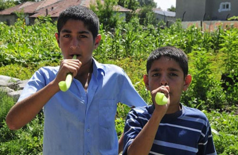 Galerinin tamamı için tıklayınızKayserili çocuklar, Güney Afrika'da Dünya Kupası ile üne kavuşan ve "Güney Afrika'nın zurnası" olarak adlandırılan vuvuzeladan ilham alarak "kabakzella" yaptı.