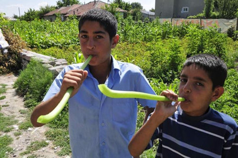 Galerinin tamamı için tıklayınızÇocuklar, "Biz vuvuzelanın adını değiştirdik, kabakzella koyduk" derken, yerli vuvuzela merakının bazı mahalle halkını rahatsız ettiğini ancak keşfettikleri sesin eğlenceli geldiğini kaydetti.