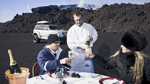 İzlanda'da Eyjafjallajokull buzulunun ortasındaki Fimmvorduhals Yanardağı'nın faaliyete geçmesinden ilham alan aşçılar, müşterilerine benzersiz bir gastronomik tecrübe yaşatmaya hazırlanıyor. Müşterilerini volkanın yanına götürecek aşçı Fridgeir Eiriksson ve Reykjavik'teki lüks otelde görevli meslektaşları, yemeklerini lavda ve gerçek volkanik taşta pişirecek. Yemek pişirmek ve sofra kurmak için gerekli malzemeleri volkanın yanına taşıyan aşçı Eiriksson ve ekibi, açık havada kırmızı halılı bir "yemek odası" hazırladı bile. Yanardağdan çıkan lavdan zarar görmemek için yemeklerini kaynakçı maskesi ve özel eldivenlerle pişirecek aşçılar, çevredeki turistlere de ikramda bulunacaklarını açıkladı. Yanardağlar sadece aşçılara değil fotoğrafçıları da heyecanladırıyor. İşte Martin Rietze'nin objektifine yansıyan nefes kesici görüntüler...