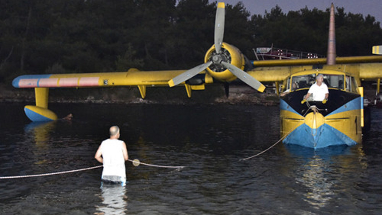 Edinilen bilgiye göre, Güvercinlik Mahallesi Kuyucak mevkisinde ormanlık alanda çıkan yangına müdahale eden 2 yangın uçağından birinin motoru arızalanınca güvercinlik koyuna iniş yaptı. Tek motorunda arıza oluşan uçağın pilotu yerleşim yerlerine yakın bir yere uçağı indirerek olası bir faciayı önledi. Uçağı ağaca bağladılar ekne ile bulunduğu bölgeden Güvercinlik Koyu'na çekilen yangın uçağı vatandaşların yardımlarıyla bir ağaca bağlandı. Uçağa bağlanan halatları çeken vatandaşlar bir süre halatı tutarak uçağın denize açılmasını engelledi. Daha sonra halatlar yardımı ile uçağı elleriyle çeken vatandaşlar karaya yakın bir bölgeye bağladı. Bazı vatandaşlar ise uçağa elleriyle yön vererek zarar görmesini engelledi. Uzun bir halata bağlanan uçak ağaca bağlanarak sabitlendi. Uçağı çalıştırmak için ise bölgeye teknik servis elemanları geldi.
