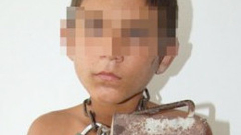 Boynundaki zincir asmalı kilitle kapatılan çocuğun, zincirin diğer ucundaki ağırlığı kucağında tutmak zorunda kaldığı, bu halde babası tarafından dün akşam saatlerinde köy meydanındaki ağacın altına bırakılan M.A'nın boynuna çok yakın mesafeden bağlanan ağırlığı kucağında tutmakta zorlandığı için yere uzandığı iddia edildi.