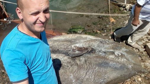 Yarım ton ağırlığında balık yakalandı Galerinin tamamı için tıklayınız Bursa'nın Gemlik ilçesi açıklarında, yarım ton ağırlığında güneş balığı yakaladı.