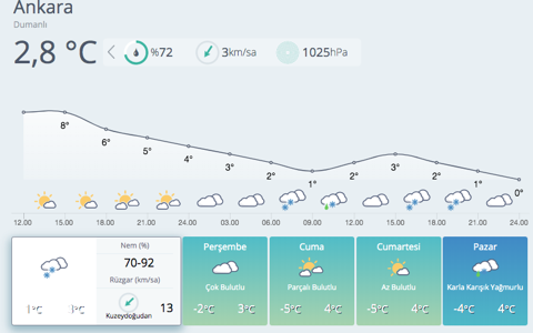 Ankara ve kar yağışının etkili olacağı illerin 5 günlük hava durumu tahmini şöyle: