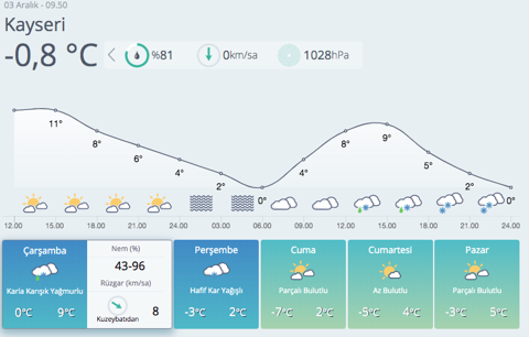 Meteorolojiden gelen son verilere göre hava sıcaklığı yarından itibaren ülke genelinde hissedilir derecede azalacak ve mevsim normallerinin altına inecek. Sıcaklığın düşmesiyle birlikte iç anadolu ve doğu anadoluda etkili kar yağışı başlayacak. Meteorolojinin yayınladığı 5 günlük hava durumu tahminine göre kar yağışı cumartesi günü yurdu terkedecek. Kara kış etkisini ilk olarak doğu anadolu bölgesinde hissettirdi. Erzurum, Ağrı, Iğdır ve Erzincan'da etkili olan kar yağışı ve tipi nedeniyle 280 köy ve mahalle yoluna ulaşım sağlanamıyor. Van ve Muş'ta ise 45 yerleşim birimine ulaşılamıyor. Rize'de kar yağışı nedeniyle Ovit Dağı geçidi ulaşıma kapatılırken, Giresun-Sivas kara yolu Eğribel Geçidi'nde kar yağışı etkili oluyor. Yarından itibaren ise kar yağışı iç anadolu bölgesini de etkisi altına alacak ve kapsamını genişletecek. Kar yağışının etkili olacağı iller4 Aralık çarşamba günü kar yağışının etkili olacağı iller listesinde Bolu, Karabük, Kütahya, Eskişehir, Ankara, Kayseri, Çorum, Kastamonu, Tokat, Sivas, Gümüşhane, Erzincan, Bayburt, Erzurum ve Ağrı illeri bulunuyor. Kar yağışı bazı illerde yağmurla birlikte sulu kar şeklinde görülecek. Kayseri, Bolu, Kütahya, Bayburt, Gümüşhane'de ise yoğun kar yağışı bekleniyor. Ankara'da yılın ilk kar yağışıAnkara bu kış mevsiminin ilk kar yağışını yarın alacak. Meteoroloji uzmanı Ahmet Uçar, başkente ilişkin şu bilgileri verdi:-Şehir merkezinde yeterli soğuma sağlanamayacağı için yerde tutmayabilir veya karla karışık yağmur şeklinde olur. Tahminimce 1000 metre rakım üzeri yerlerde kar yağacak ve örtüde yapacaktır.Ankara ve kar yağışının etkili olacağı illerin 5 günlük hava durumu tahmini şöyle: