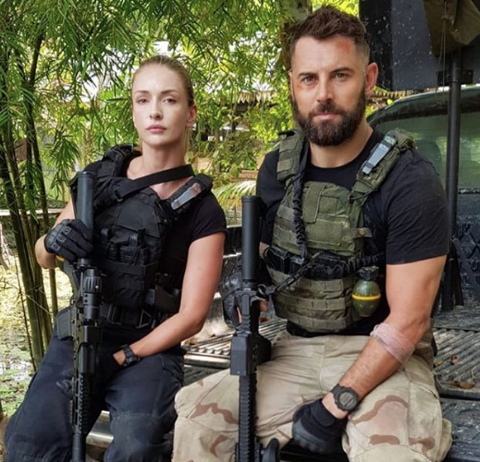 Güzel oyuncu, 'Strike Back' dizisinin çekimi için gittikleri ormanda arkadaşlarının yakaladığı pitonu kucağına aldı! O anları da İnstagram hesabından paylaştı.
