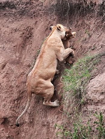 Galerinin tamamı için tıklayınızYavrusunu tutunduğu uçurumdan ensesinden yakaladı ve güvenli bölgeye çıkardı.