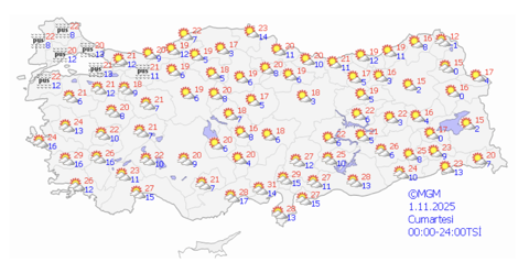 Rüzgarın ise genellikle güneyli, yurdun doğu kesimlerinde kuzeyli yönlerden hafif ara sıra orta kuvvette esmesi bekleniyor.