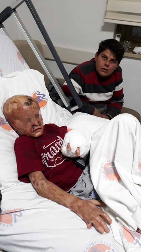Galerinin tamamı için tıklayınızMuhammed'in durumuyla ilgili İhlas Haber Ajansı (İHA) muhabirine açıklamalarda bulunan Doç. Dr. Tenekeci, "Suriye’deki bir patlama sonucunda yüzünde ve vücudunda çok sayıdaki bölgede yanıklar ve yaralanmaları mevcut. İyileşme döneminde ne yazık ki çeşitli çekintiler ile iyileşen bir hastamız. Parmaklarında olsun, her 2 elde, bacaklarda, kollarında, yüzünde ciddi yaralanmalar ve yanmalar var. Buna bağlı olarak göz kapakları, gerek burun kanatları, burnu, elleri, parmakları bütün bu bölgelerde fonksiyon kaybı oluşturan, görüntüsel kayıplara da neden olan bazı iyi olmayan sonuçlar görüldü. Muhammed, Suriye’den ülkemize bu şekilde geldi. Biz de burada gerekli müdahalelerde bulunduk. Tabii ki bu işler hemen olmuyor. Bu müdahaleleri aşamalı bir şekilde gerçekleştirmek lazım. Biz ameliyatın muayenemizden sonraki ilk aşamasını yaptık. Bu aşamasında da plastik cerrahi kliniği olarak tedavisini üstlenip, önce sol eline gerekli müdahaleyi yaptık. Daha sonrada göz kapağı ve burun kanatlarıyla ilgili bazı müdahalelerde bulunduk. Buradaki yanıkları iyileştirmek ve oluşan hareket kayıplarını olabildiğince toparlamak amacıyla bu işlemi gerçekleştirdik" dedi.