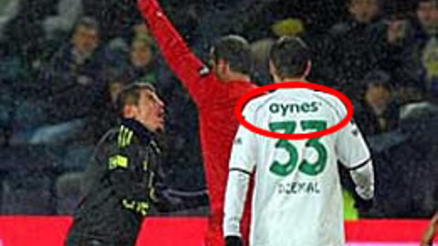 oyuncuların sırtında da Aynes reklamı bulunuyor. Bu maçta diğer