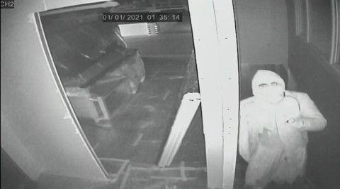 Galerinin tamamı için tıklayınızBuradaki kamerayı fark eden hırsız, eliyle yönünü değiştiriyor. Defalarca ofise girip çıkan şahıs kepengin kumandasını bulamayınca lüks araçların anahtarlarını alıyor. İçeride kadın kılığında dolaşan şahıs ardından lüks araçların olduğu bölüme geçerek açılardan kayboluyor.