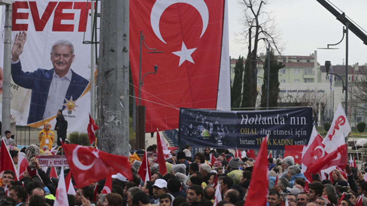 AK Parti Genel Başkanı ve Başbakan Binali Yıldırım, partisinin Bursa Gökdere Meydanı’nda düzenlenen mitingine katılarak vatandaşlara hitap etti. Mitingde Hollanda'nın skandal tutumu da pankartlara yansıdı. Pankartta Hollanda'da yaşanan krizle ilgili "Hollanda'nın OHAL ilan etmesi için bir tane Türk kadını yetti" ifadesi yer aldı. Vatandaşlar mitinge ilgi gösterdi. "GÜNEŞ DOĞU'DAN DOĞUYOR, BATI'DAN HAYIR GELMEZ" İstanbul'dan İzmir'e vatandaşların 2 saat 50 dakikada gideceğini dile getiren Yıldırım, "İşte medeniyet bu, boş lafla olmaz. Şimdi biz bu eserleri yapıyoruz ya, Batı'dakilerin ayarı bozuluyor, daha da bozulacak. Güneş doğudan doğuyor, 'batı'dan hayır gelmez." ifadesini kullandı. Halk oylamasına bir aydan biraz fazla zaman kaldığını ve Türkiye'nin her tarafını dolaşarak vatandaşlarla bir araya geldiklerini dile getiren Başbakan Yıldırım, bugün de İstanbul-İzmir Otoyolu'nun Gemlik ve Bursa arasındaki 25 kilometrelik kısmının açılışını gerçekleştireceklerini söyledi. BİR HAFTALIK GELİR ŞEHİT VE GAZİ YARARINA TOPLANACAK Vatandaşlara, "16 Nisan'da aydınlık Türkiye'nin kapılarını aralamaya var mıyız?" diye soran Yıldırım, halkla birlikte "Daima millet, kararımız evet. Tek bayrak için, tek millet için, tek devlet için kararımız evet." dedi. Konuşmasının ardından yolun açılış töreninde kurdeleyi kesen Yıldırım, "Bir hafta boyunca buradan elde edilecek gelirler, şehit ve gazilerimiz yararına açılan hesaba toplanacak." diye konuştu.