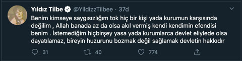 Galerinin tamamı için tıklayınız"Benim kimseye saygısızlığım yok hiç bir kişi yada kurumun karşısında değilim, Allah banada az da olsa akıl vermiş kendi kendimin efendisi benim." diyen Yıldız Tilbe şöyle devam etti: