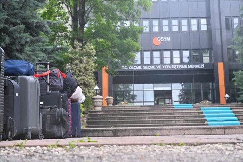 Galerinin tamamı için tıklayınızKapalı matbaa dönemine girecek sınav görevlileri, ÖSYM merkezi önünde buluştu. Buradan araçlarla kapalı merkeze bavullarıyla birlikte ulaşan görevliler, 40 günlük kapalı dönem için yüksek güvenlik önlemleri altında kapalı matbaa merkezine giriş yaptı.