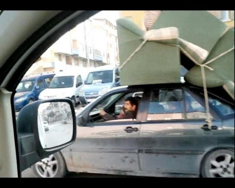 tamamını bir otomobilin üzerinde taşıması ilginç görüntülere sahne