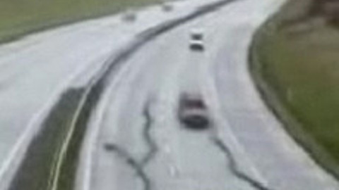 Meydana gelen deprem sonrası önündeki yol çatlıyor ve kocaman bir