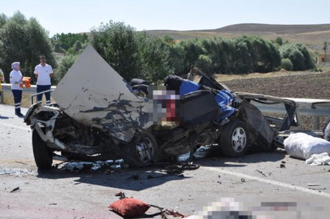 YOZGAT'ın sorgun ilçesinde kamyonla çarpışan otomobile bulunan 5