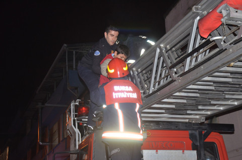 Yangın, Bursa’nın merkez Yıldırım İlçesi Duaçınarı Mahallesi Has Sokakta meydana geldi. Edinilen bilgiye göre gece saatlerinde Ömer A.’ya ait 2 katlı bir binada bilinmeyen bir sebeple yangın çıktı. Kısa sürede büyüyen ve çevredeki binaları tehdit eden yangın nedeniyle bölgeye çok sayıda itfaiye ekibi yönlendirildi. Bursa Büyükşehir Belediyesi İtfaiye Müdürlüğü ekipleri yangına müdahale ederken, yan binada mahsur kalan 5 çocuk, merdivenli itfaiye aracıyla tahliye edildi. Yaklaşık bir saat süren çalışmayla yangın söndürüldü. Sağlık ekipleri kontrol amaçlı 5 çocuğu da olay yerinde tedavi altına aldı. Polis yangınla ilgili soruşturma başlattı.