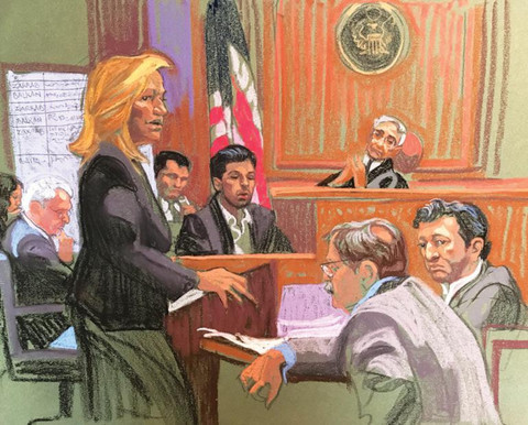 Galerinin tamamı için tıklayınızEJDERHALI KADIN: Hazırlık duruşmalarındaki keskin çıkışları ve esprili tarzıyla adından bahsettiren Hakan Atilla’nın dev avukat ekibinden Cathy Fleming’in sırtında kırmızı ejderha deseni olan lacivert ceketi nedeniyle aramızdaki kod adı ‘Dragon Lady - Ejder Kadın’ kaldı. Bir öğle yemeği arasında yanına gittim; Türk basınında hakkında çok yazılıp çizildiğini hatırlatınca “Genç ve inceymiş yazıyorsanız sorun yok” diye sırıttı. Avukat Cathy Fleming’in arkasında Zarrab’ın ünlü şemalarından biri duruyor. Atilla’nın solundaki gözlüklü adam, onun diğer avukatı Victor Rocco. Zarrab’ın sol arkasında, FBI Türkçe uzmanı Bülent Bulut, elinde mikrofonu, simultane çeviri yapıyor.