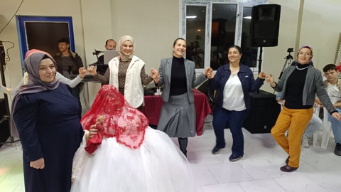 Galerinin tamamı için tıklayınızManisa’nın Yunusemre ilçesine bağlı kırsal Akçaköy Mahallesi'nde yaşayan Toplar ailesinin tek evladı olan 25 yaşındaki Mental Retardasyon hastası olan Esra Toplar’ın beyaz gelinlik hayali gerçek oldu. Akçaköy Düğün ve Sosyal Tesislerinde damatsız yapılan düğünde beyaz gelinlik hayalini gerçekleştiren Esra Toplar’ı annesi Gülşah ve babası Necati Toplar biran olsun yalnız bırakmadı.