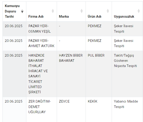 Galerinin tamamı için tıklayınızTarım bakanlığının 20 Haziran tarihli sahte ürün listesinde