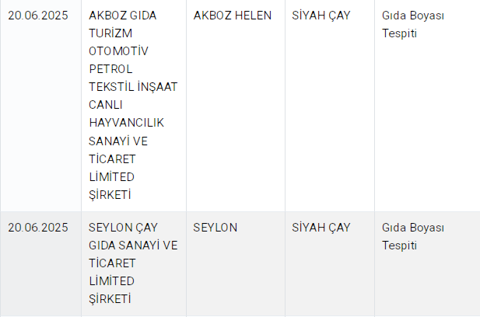 Galerinin tamamı için tıklayınızAkboz Helen Siyah çay : Gıda boyası tespit