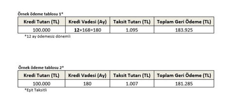 ödemesiz dönemli, azami 15 yıl vade ve aylık yüzde 0,74 faiz oranı