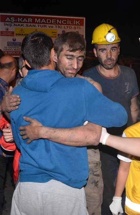 Galerinin tamamı için tıklayınızOcak sahibi İsmail Aşkar, işçilerden Eray Saka'ya sarılarak geçmiş olsun dileğinde bulundu. Madencilerin sağ çıkarılması sonrası ocak önünde bekleyen arkadaşları sevinç yaşadı.