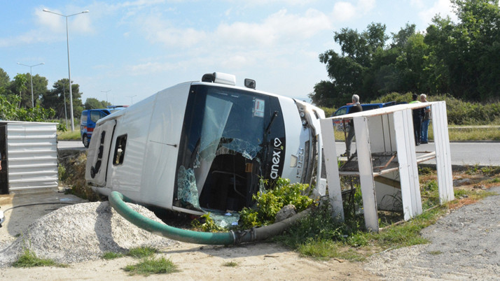 Abone olFatih K. idaresindeki 07 AVN 799 plakalı tur midibüsü, Gündoğdu Mahallesi Yörük Mustafabey Bulvarı'nda kontrolden çıkarak yol kenarına devrildi.