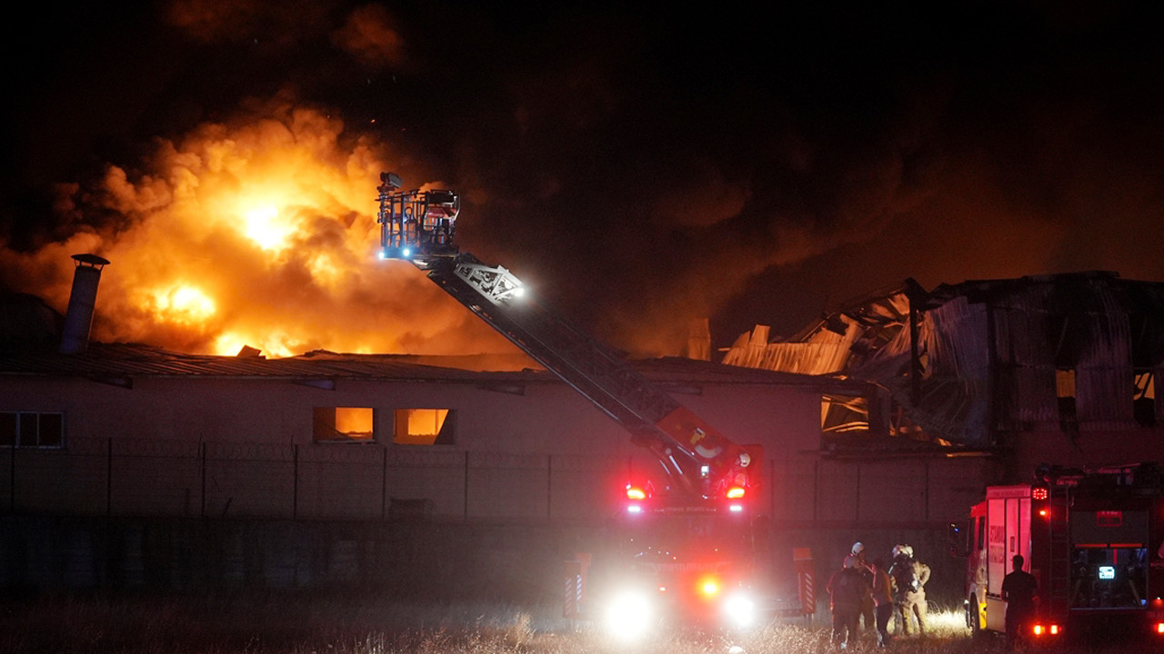 Ekipler, geniş alana yayılan yangının çevredeki fabrikalara sıçramaması için yoğun çaba sarf ediyor.