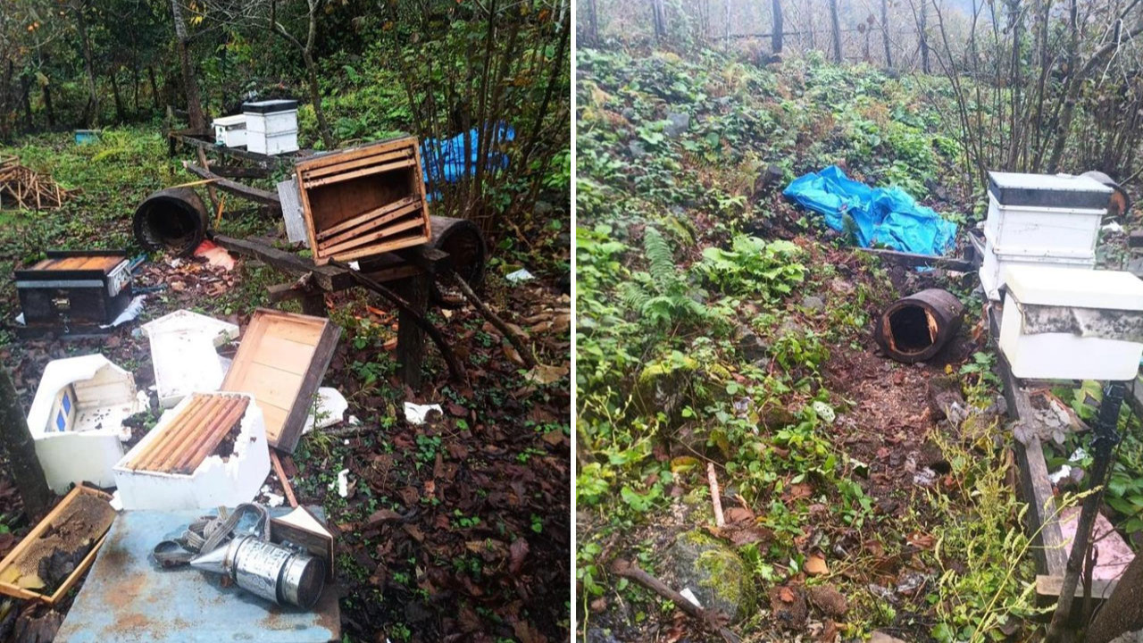 Kış uykusuna girmeden önce besin ihtiyacını karşılamak için yerleşim yerlerinde sık görülmeye başlayan ayılar bu sefer kestane balı dolu arı kovanlarını parçaladı. Binlerce lira değerinde zarara yol açan ayılar daha sonra ormanda gözden kayboldu.