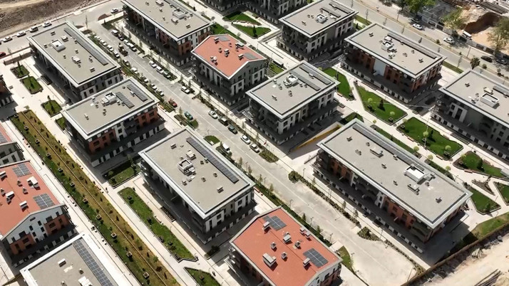 Videoda, 1.183’ü konut, 1.595’i iş yeri olmak üzere toplam 2 bin 778 bağımsız bölümün yapıldığı Azerbaycan Mahallesi ve o mahalledeki Haydar Aliyev İlkokulu’nda eğitim alan öğrenciler ile Ebrar Sitesi'nin görüntüleri yer alıyor.