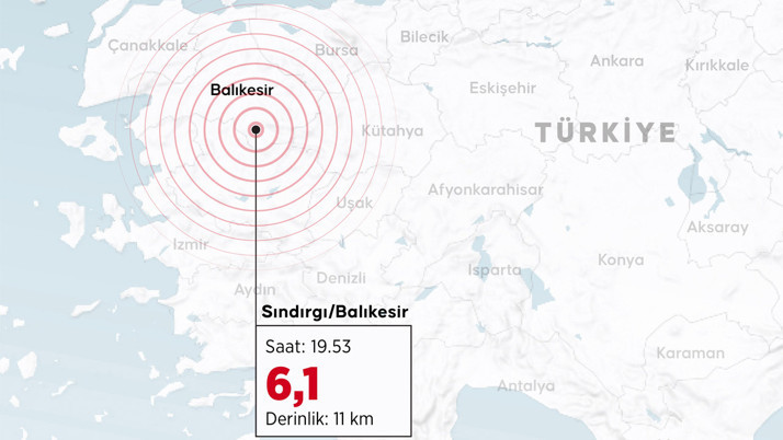 TÜRKİYE bugün Balıkesir'deki depremle sallandı. Depremin büyüklüğü 6.1 olarak açıklandı. Deprem İstanbul, Bursa, Eskişehir, Ankara ve İzmir'de de hissedildi. Balıkesir'de yaşayanlar depremin uzun sürdüğünü ve şiddetli olarak hissedildiğini bildiriyorlar. Gelen son dakika haberine göre 2'si 4'ten büyük 7 artçı deprem daha meydana geldi. Depremde yaralanan 4 kişi tedavi altında.