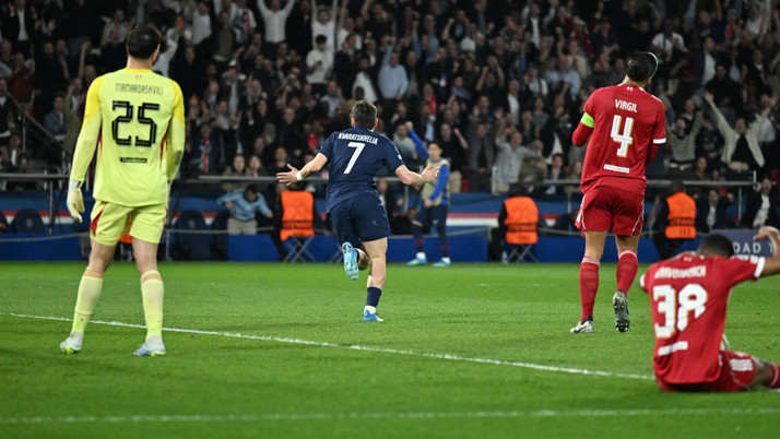 Turnuvanın son şampiyonu Fransız temsilcisi PSG, sahasında ağırladığı İngiliz ekibi Liverpool'u 11. dakikada Desire Doue ve 65. dakikada Khvicha Kvaratskhelia'nın attığı gollerle 2-0 yenerek yarı final için avantajlı bir skor elde etti.