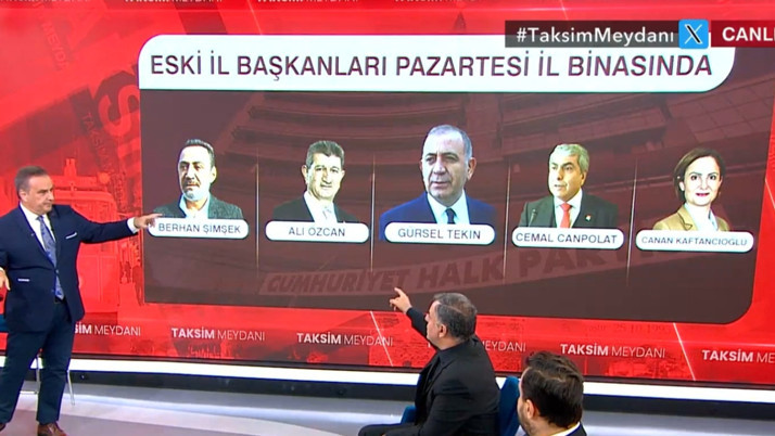 İl Başkanlığı binasına gidecek isimler ise Gürkan Hacır ve Barış Yarkadaş ile canlı yayında analiz edildi: “Berhan Şimşek, bir dönem siyasetçi ve İl Başkanı olarak başarılı bir isimdi. Ali Özcan, SHP ile CHP’yi birleştiren saygıdeğer iş insanlarından biri. Cemal Canpolat ise CHP siyasetiyle ilgilenen herkesin tanıdığı bir isim. Canan Kaftancıoğlu da önemli bir başka isim” dedi. Mustafa Özyürek ve Bozkurt Nuhoğlu gibi isimlerin de sürece dahil olacağı ifade edildi.