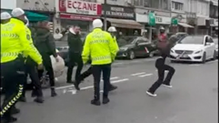 Çevredeki vatandaşların şaşkın bakışları arasında otomobilinin içine kapanan kadın, yüksek sesli müzik eşliğinde dans etmeye başladı. Polisin tüm ikazlarına rağmen araçtan inmeyen Gizem K., bir yandan kornaya basarken bir yandan da aynaya bakarak ruj sürdü.