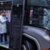 Kazaya karışan metrobüslerde hasar oluştu, kırılan cam parçalarının yere saçıldığı görüldü.