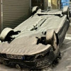 Beylikdüzü'nde kontrolünü kaybeden kar küreme aracının çarptığı park halindeki otomobil ters döndü.