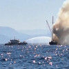 Söndürme çalışmaları sırasında açığa sürüklenen tekne battı.