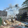 Soğutma çalışması sürdürülen fabrikada büyük çapta hasar oluştu.