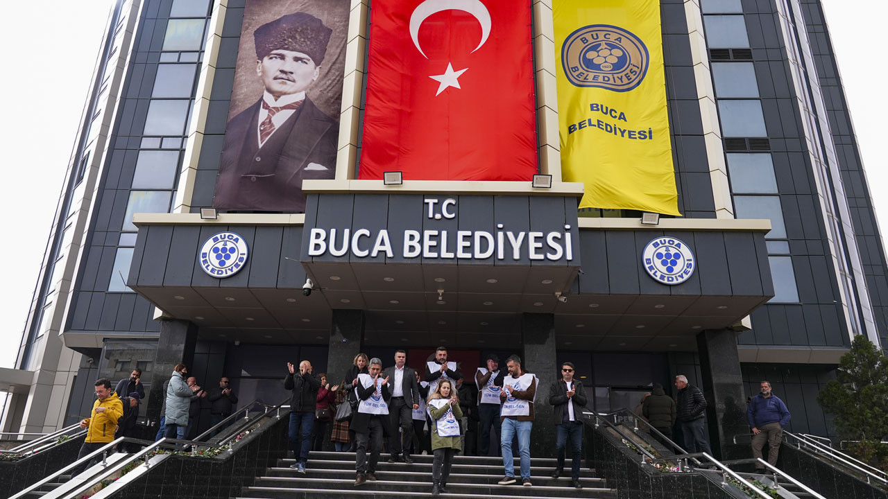 İzmir'in Buca Belediyesinde çalışan yaklaşık 300 memur, 7 aydır Sosyal Denge Tazminatı ve diğer alacakları ödenmediği gerekçesiyle basın açıklaması gerçekleştirdi.