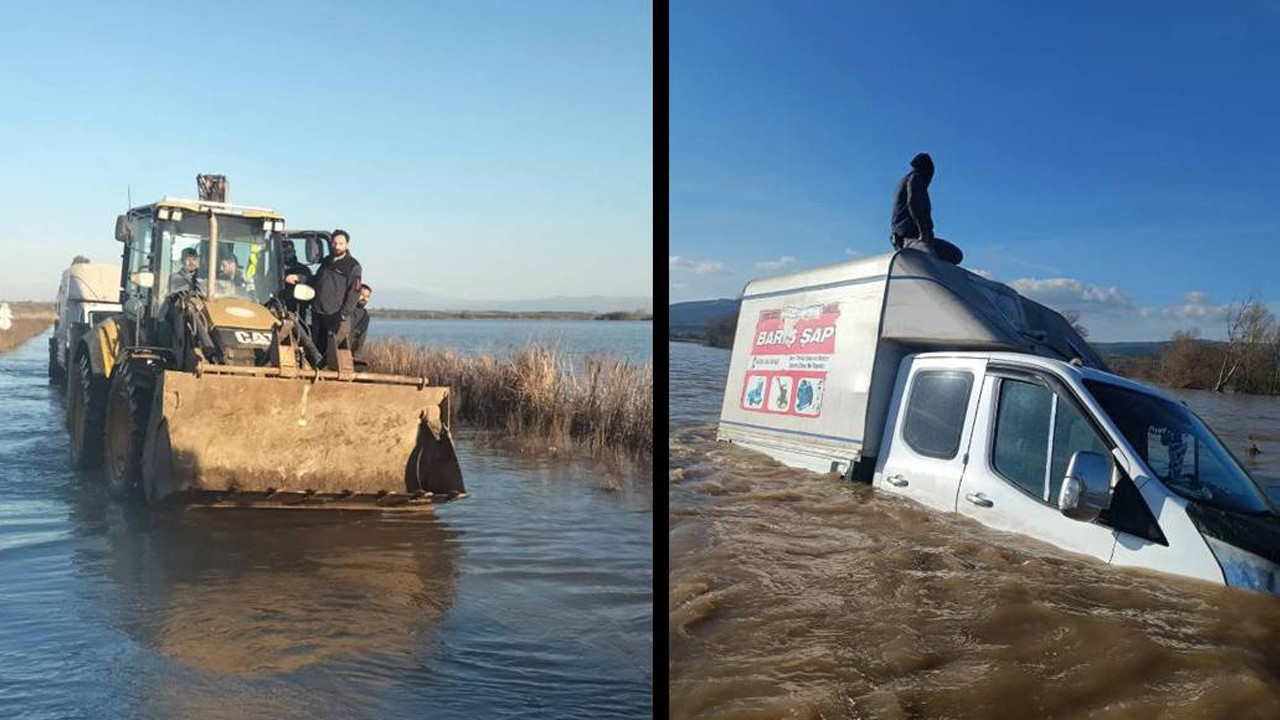 Bursa’nın Karacabey ilçesinde etkili olan yağış ve kar erimesi sonrası debisi yükselen Çapraz Çayı taştı; Harmanlı kara yolu ile Harmanlı Köprüsü ulaşıma kapatılırken, bir kamyonet üzerinde mahsur kalan 2 kişi ekipler tarafından kurtarıldı.