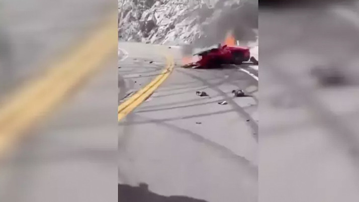 Görgü tanıkları, dağ yolunda alevler içinde kalan, hurda haline gelmiş kiraz kırmızısı Ferrari'nin videosunu paylaştı. Kazanın nedeni hala soruşturuluyor.