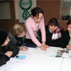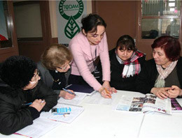 Çankaya Yıldız'daki merkezde İngilizce kursuna katılan kadınlar, sınıf ortamında, öğretmenleri eşliğinde dil öğrenmekten son derece mutlular.